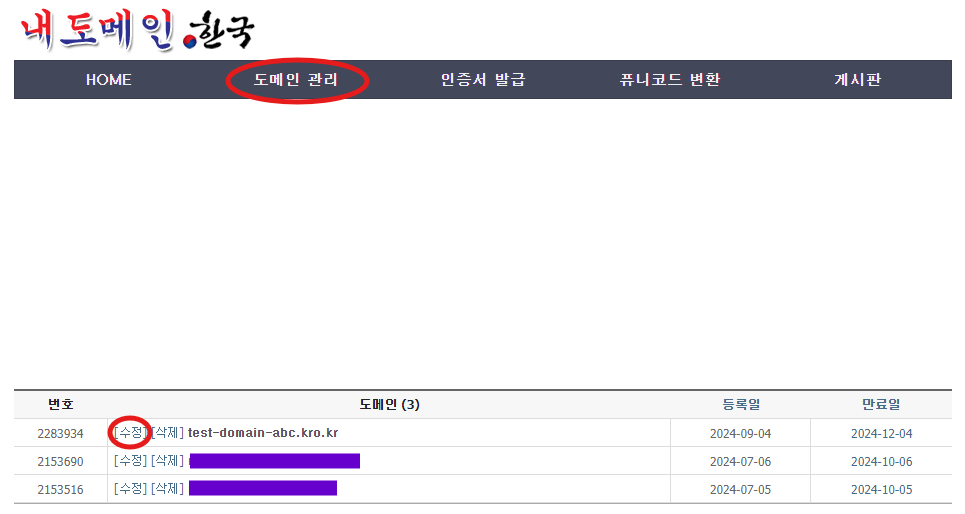 1. 도메인 관리 -> 도메인 수정