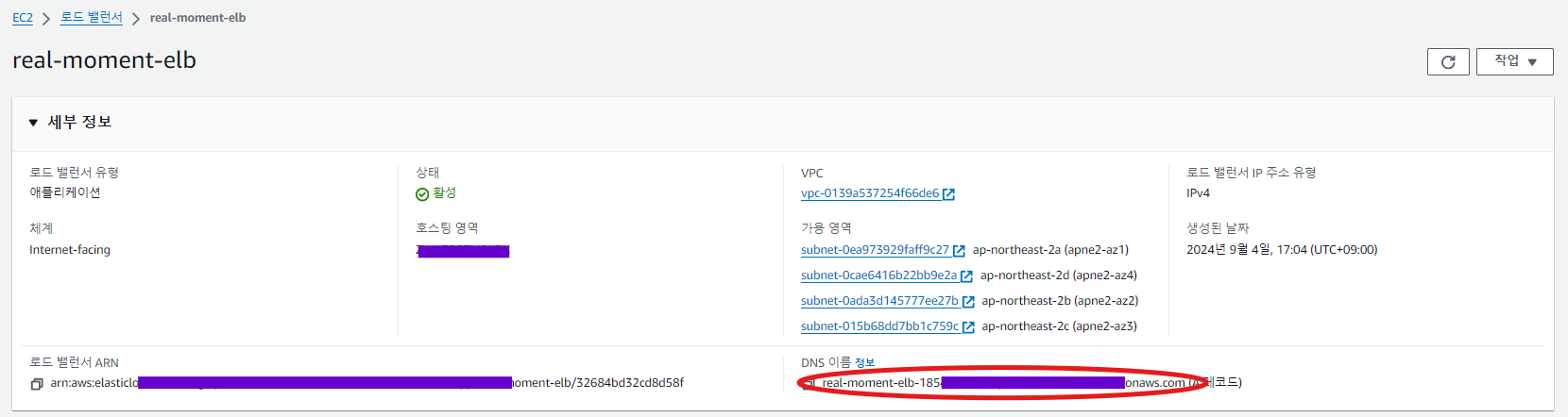 ELB의 DNS 주소는 EC2 -> 로드밸런서 -> 연결할 로드밸런서 세부정보에 존재한다.