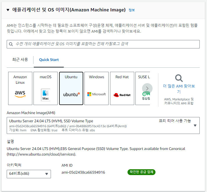 일반적으로 기본으로 설정된 AMI를 그래로 사용하거나 최신 버전을 사용하면 된다.