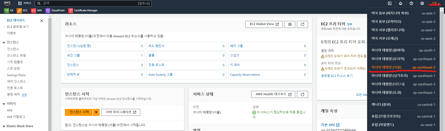 AWS를 사용할 때 항상 리전을 확인해야 한다.