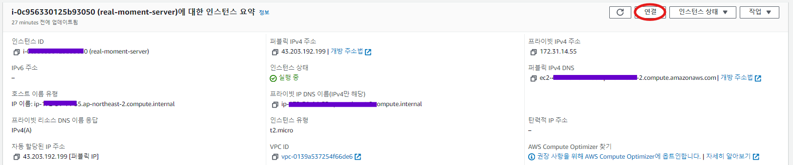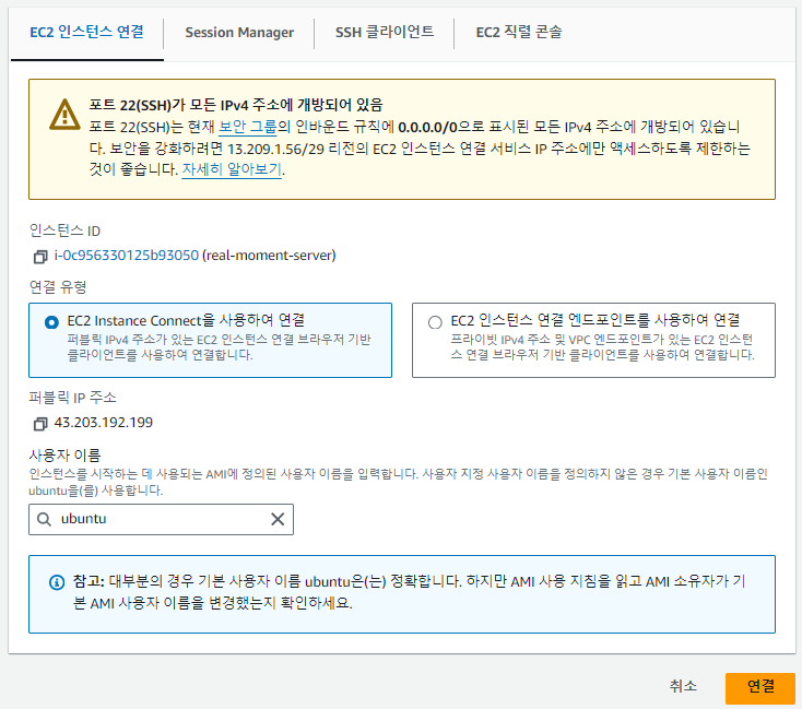 - EC2 인스턴스 연결 (AWS 페이지에서 직접 인스턴스에 SSH로 접속)