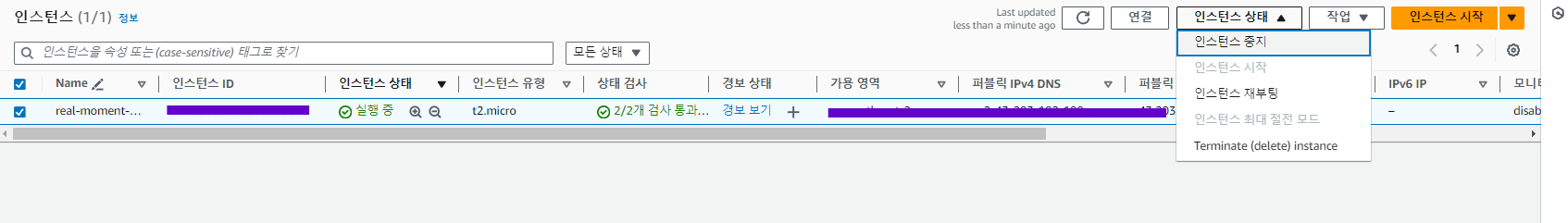 - 인스턴스 재부팅 : 컴퓨터를 재시작하는 역할 (인스턴스 실행을 멈추고 다시 실행)