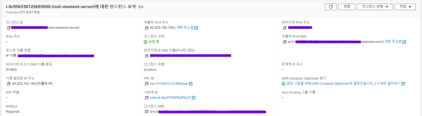 인스턴스에 할당된 퍼블릭 IPv4주소다.