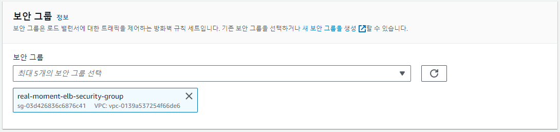 HTTP 형태 (80포트)로 ELB에 요청한 트래픽은 "real-moment-target-group" 대상 그룹으로 트래픽을 분배하여 전달하도록 설정했다.