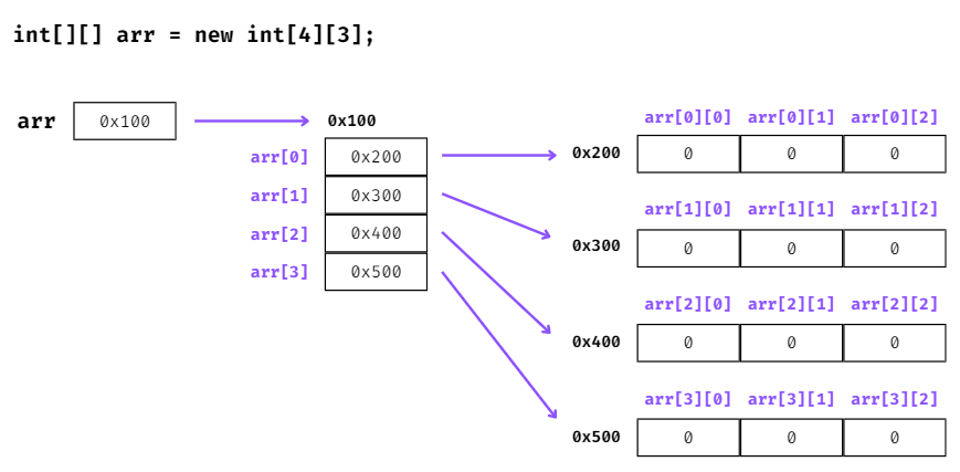 int[][] arr = new int[4][3];