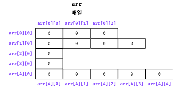 각 행(배열)의 길이(크기)를 각자 다르게 생성할 수 있다.