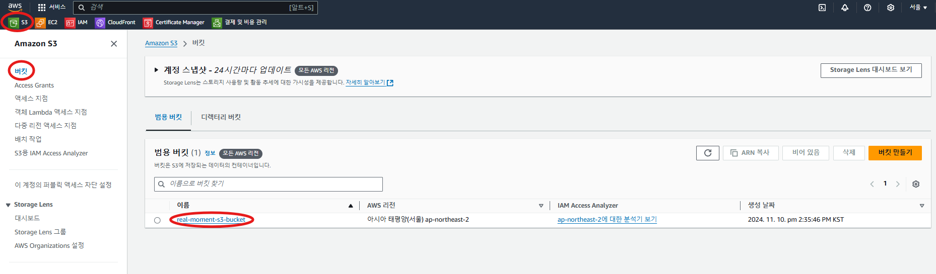 real-moment-s3-bucket 버킷에 있는 모든 파일들을