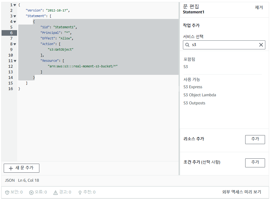 [버킷 정책 과정] S3 버킷에 업로드된 객체(이미지)를 조회하는 권한 설정
