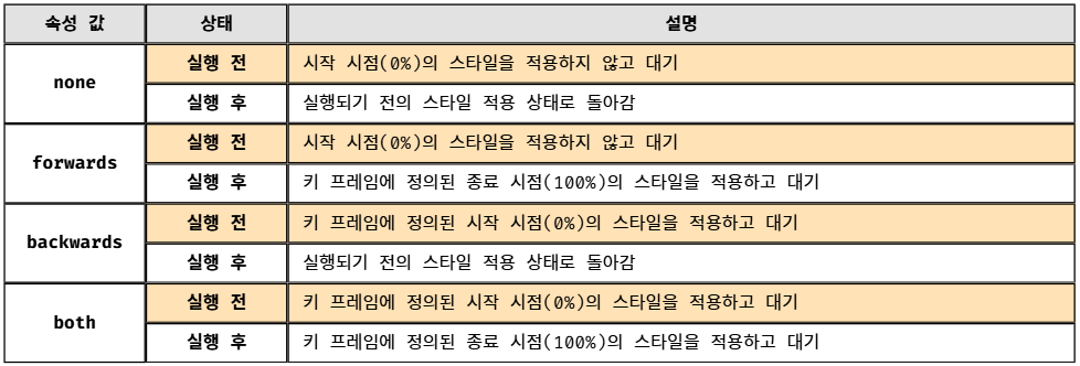애니메이션이 실행되지 전과 후의 스타일을 지정하는 속성이다.
