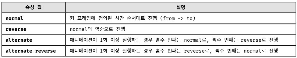 애니메이션의 진행 방향을 지정하는 속성이다.